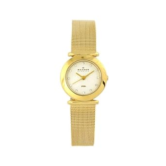 Skagen Women 107SGGD Classic Swarovski Crystal Gold Tone Mesh White Dial Watch
